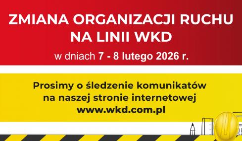 Aktualizacja w dn. 14.01.2026 r. ZMIANA ORGANIZACJI RUCHU POCIĄGÓW NA LINII WKD OD DNIA: 17.01.2026 (SOBOTA) DO DNIA: 01.02.2026 (NIEDZIELA) W związku z realizacją kolejnego etapu przedsięwzięcia...