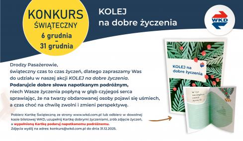 Warszawska Kolej Dojazdowa serdecznie zaprasza wszystkich pasażerów – bez względu na wiek – do udziału w wyjątkowym, świątecznym konkursie, którego celem jest kultywowanie bożonarodzeniowych...